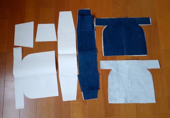 First, I used interfacing, which is a textile that adds stiffness to the fabric. It is shown in the following image. (The white fabric in the lower right.)