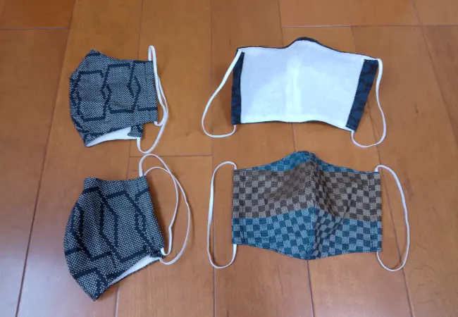 Since it suddenly became cooler, I took a break from making bags and learned how to sew winter masks. I finally made them, as shown in the following photo: