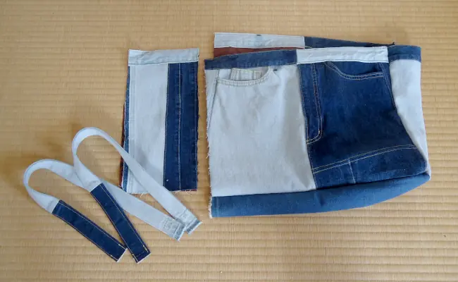 I thought it would be beautiful if I applied straight and clear patchworks. However, I realized that its contrast was too high, as shown in the following photo. In addition, I noticed that I forgot to add inner pockets. I need to unsew many parts and modify them.