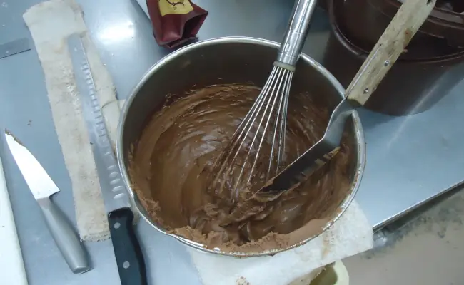 Then, I prepared ganache, which is the chocolate icing on the cake, although my part was only whipping it.