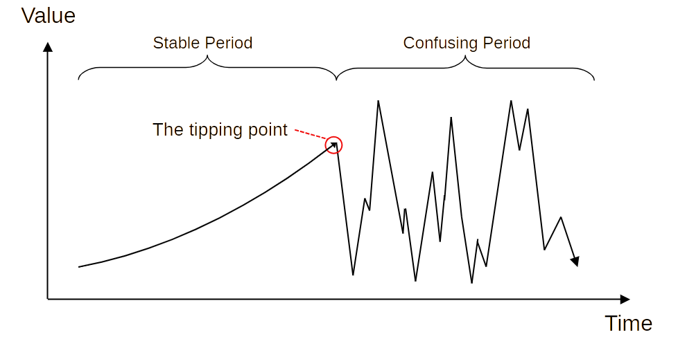 • A confusing period: Since the situations can change suddenly, it is difficult to predict what will happen in the future. People cannot plan and are often driven by fear. That causes an extreme change in social direction. During this period, the economy tends to experience a recession.