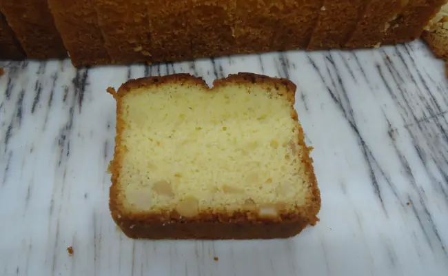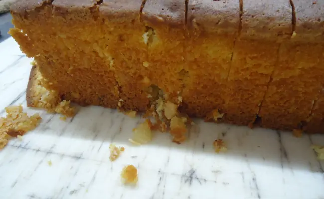 The pound cake that had finally been cut looked like the following.
